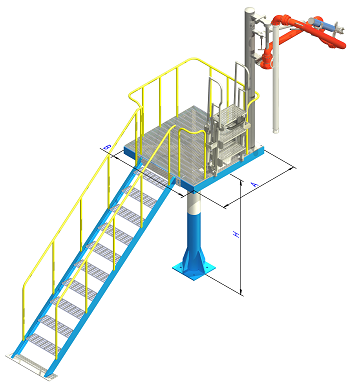 This type of trestle is designed for the top loading operation of the train tank car, and the operator can safely reach the top of the tank car for operation through the movable ladder. It consists of uprights, stacks, inclined ladders, safety ladders, guardrails, etc.
